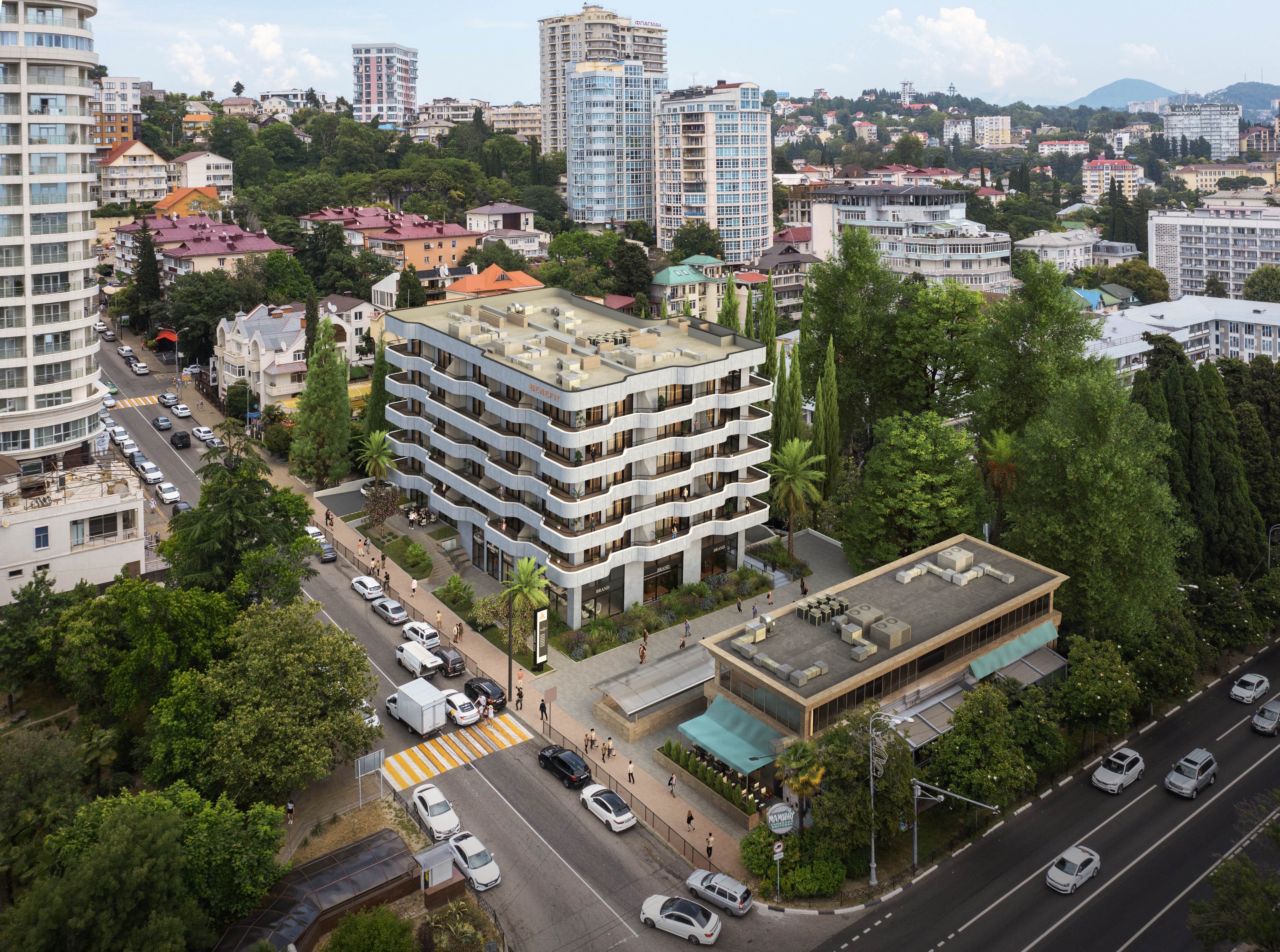Апартаменты в новом премиальном бутик-отеле с атмосферой элитного закрытого клуба в самом центре курорта (площадь Искусств), в 10 минутах прогулочным шагом до моря, центральной набережной, Морпорта, прогулочной Навагинской.